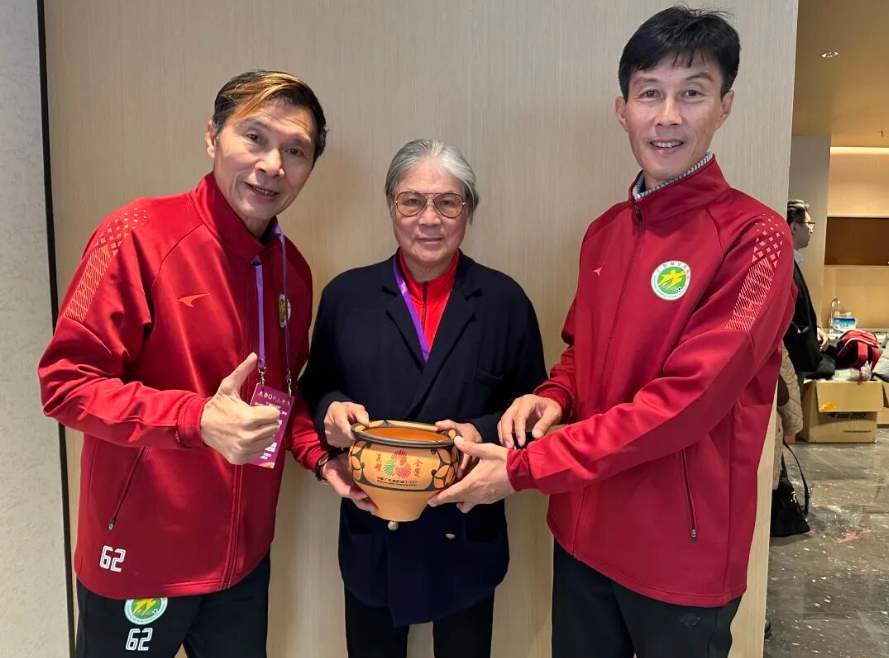 2026年1月3日,第44屆“省港杯”足球賽(第二回合)在廣州南沙大灣區(qū)文體中心體育場(chǎng)舉行?;顒?dòng)現(xiàn)場(chǎng),一場(chǎng)特殊的文化交流引人注目——三門峽市非物質(zhì)文化遺產(chǎn)代表性傳承人王新軍委托參加省港杯元老賽的前國(guó)家足球隊(duì)隊(duì)長(zhǎng)池華明、區(qū)楚良,向蒞臨觀賽的中國(guó)香港體育協(xié)會(huì)暨奧林匹克委員會(huì)會(huì)長(zhǎng)、亞奧理事會(huì)第一副主席霍震霆,贈(zèng)送“全運(yùn)花開”仰韶彩陶盆,以此表達(dá)對(duì)霍氏家族的由衷敬意,感謝其為祖國(guó)體育事業(yè)及足球發(fā)展作出的重要貢獻(xiàn)。中國(guó)香港足球協(xié)會(huì)主席霍啟山一同見證了這一時(shí)刻。